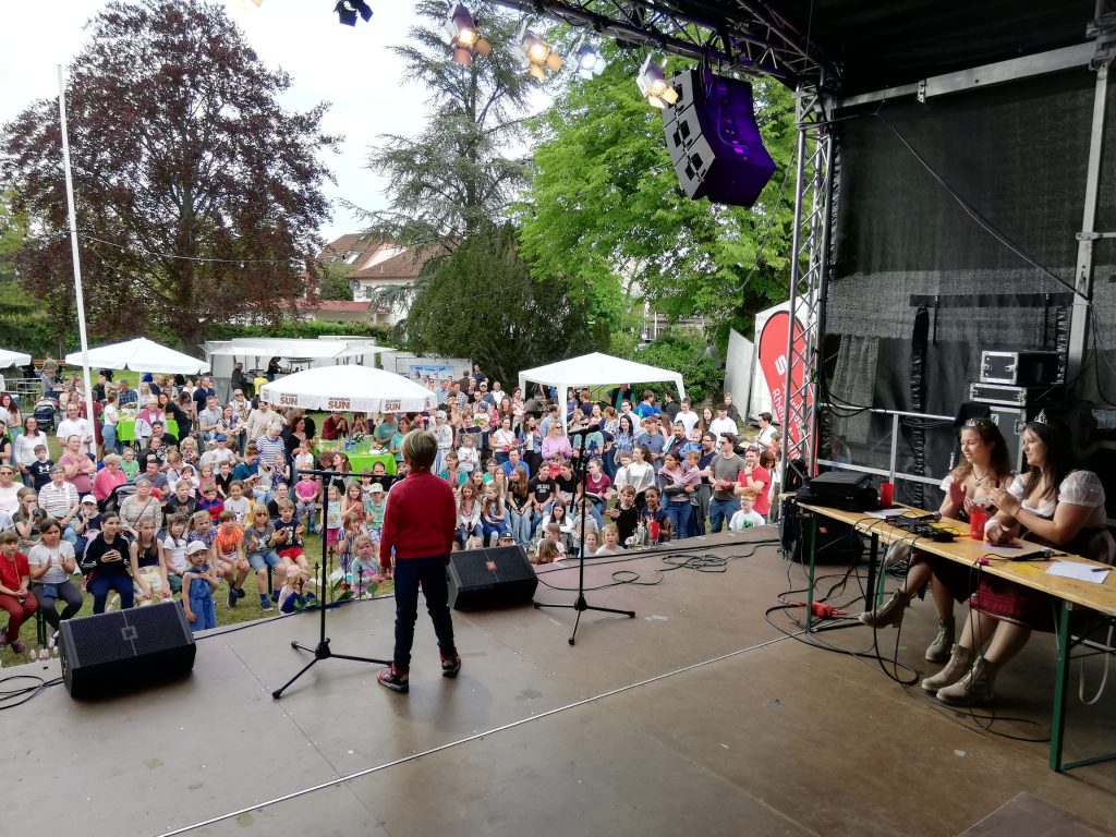 An eurem großen Auftrittstag könnt ihr euch eine halbe Stunde vor Beginn auf der Bühne anmelden. Bringt dazu euer Lied, egal ob auf CD, USB-Stick oder Handy, mit. Die Wartezeit bis zu eurem Auftritt können sich eure Eltern und Großeltern auch mit einem Stück Kuchen von unserem Kuchenbuffet versüßen.
